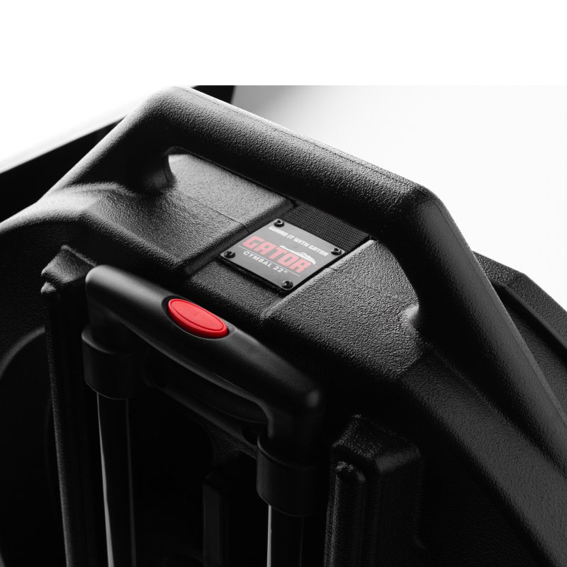 Gator Grooves GPCCYM22W delivers premium protection, combining rugged construction with effortless mobility for drummers who need dependable storage and tour-ready durability on the go. This 22” hard-shell cymbal case is built from tough, black roto-molded polyethylene, offering exceptional impact resistance to safeguard your cymbals in transit. Designed to fit cymbals up to 22", the stackable interior accommodates up to eight traditional-style cymbals (capacity may vary when storing China cymbals, flat rides, or models with oversized bells). Four padded dividers help prevent metal-on-metal contact, keeping your cymbals clean, organized, and protected. A heavy-duty 2" strap with a locking high-tension buckle securely holds everything in place for added peace of mind. Built to withstand the demands of touring, this case features smooth-rolling rubber inline wheels paired with a retractable telescoping handle for easy transport to rehearsals, gigs, and studio sessions. The rubber wheels glide safely over delicate floors, ensuring long-term performance. Whether you're a performing drummer, a traveling session player, or a dedicated weekend warrior, the Gator Grooves 22” hard-shell cymbal case with wheels delivers the rugged construction, smart design, and reliable protection your cymbals deserve. |