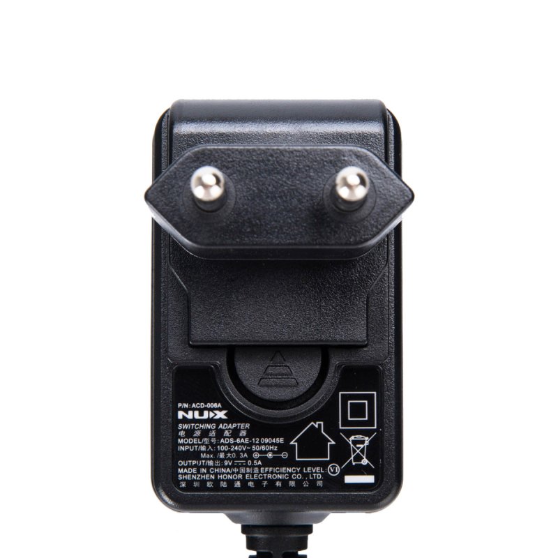 The NUX ACD‐006A switching power adapter is highly efficient for use with guitar pedals. It features a switching regulator to manage electrical power conversion, ensuring stable voltage for optimal pedal sound. With a professionally designed circuit and thoughtfully selected components, it minimizes ripple and noise.