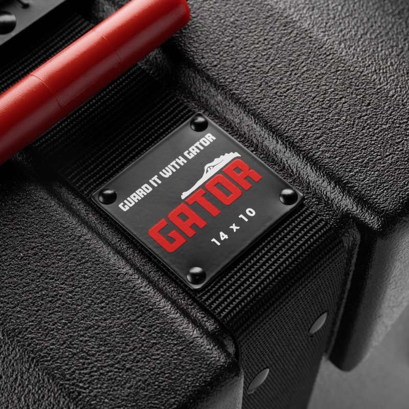 Convenience meets durability with quick-ID exterior sizing badges, a heavy-duty 2” adjustable strap with a high-tension buckle, and a rugged spring-loaded 90-degree stop handle for secure carrying. The innovative Gator Grooves stacking system features interlocking channels that align with pedestal feet for stable, secure stacking.