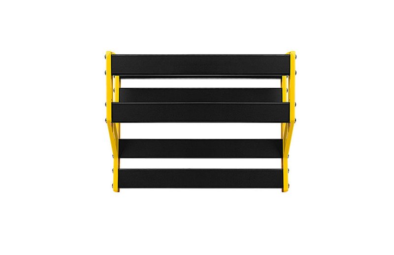 NUX Bumblebee is made by anodized aluminum material; which is "solid as a rock, light as a pillow". The bottom of the platforms are carved and well-supported, and gives you some space to cover your cables without losing any strength. And the side parts are strongly holds all the parts together, it can absorb the shock when you hit your pedal footswitch.