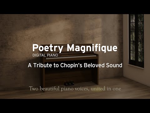 The Poetry Magnifique is a premium digital piano inspired by the timeless artistry of Frédéric Chopin. It features two iconic piano sounds, the brilliant Italian Concert Grand Piano and the historically restored 1843 PLEYEL, Chopin’s own favored instrument, captured in exquisite detail to deliver a deeply expressive playing experience. Designed with elegance in mind, its refined “Poetic Brown” woodgrain finish, solid wood panels, and smooth, flat-top lid create a sophisticated presence that complements any space.
