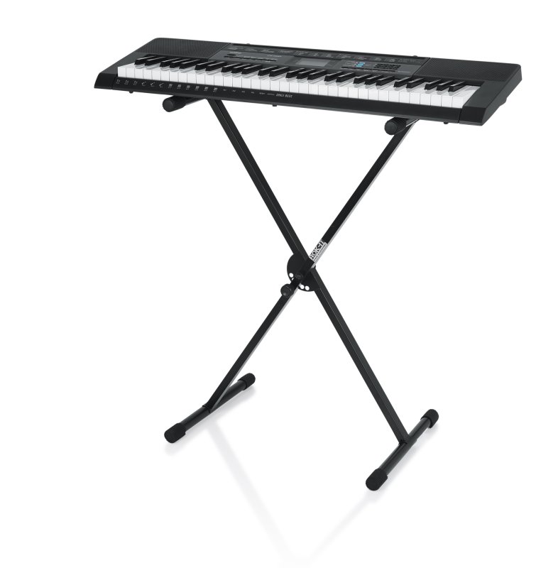 The Gator Cases Rok-It X-Style Keyboard Stand is a single-X stand designed to hold a keyboard or synthesizer for a musician or producer in a studio, home, store, or on stage. The stand offers a four-position, height-adjustment mechanism to accommodate the player's preference. Heavy-duty metal tube construction provides stability, and the black powder-coated finish delivers durability. The keyboard cradle is rubberized to minimize slippage and protect your instrument from scuffs and dings at points of contact with the stand. Rubber feet keep the stand from sliding across your floor. |
