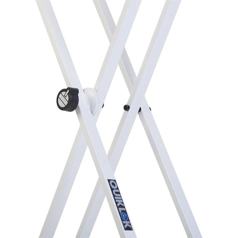 In home environments or during live performances, choosing the right keyboard stand can make a difference, especially in tight spaces. If you need to store your keyboard in its case and take the stand out as needed, the T/10 WH from Quik Lok is the ideal choice for its quality and affordability. The steel structure of the T/10 WH is electronically welded to ensure maximum quality and reliability. The "toothed" locking system at the center of the stand was chosen for its simplicity of use, elegance, and anti-slip features. This system allows for quick adjustments across one of the 9 available height levels, ensuring optimal stability. Equipped with self-leveling rubber feet and keyboard pads, the T/10 WH compensates for any irregularities in floors and keyboards for unparalleled stability. Additionally, a complete line of Quik Lok accessories is available to fully customize your stand to meet your needs: QLX3, QLX4, QLX5, LPHX, IPS13, QL662.
