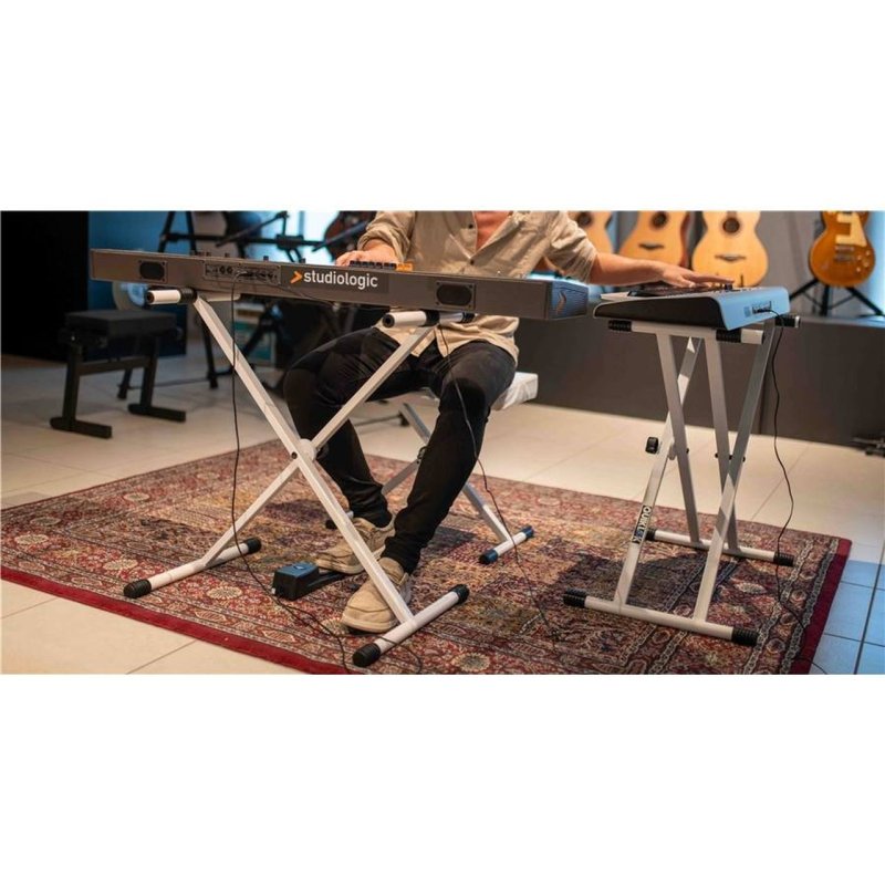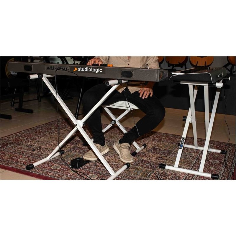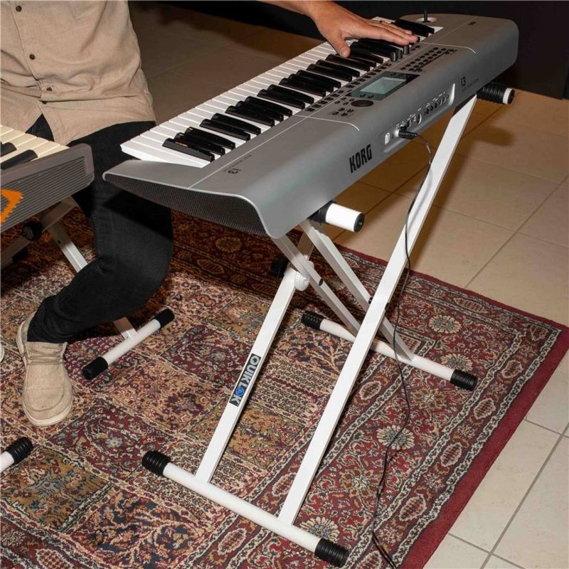 The T/10 WH is Quik Lok's X-frame keyboard stand, now available in an elegant white finish. This model stands out for its beauty and its ability to harmoniously integrate into refined home environments or with white digital pianos, while maintaining the best value for money.